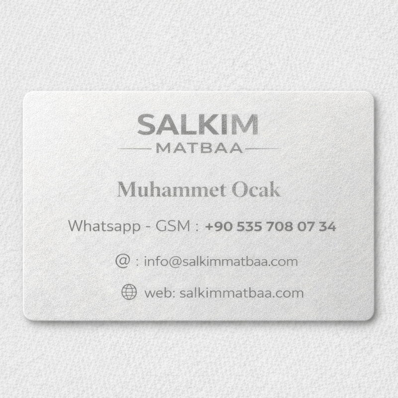 Sıradanlığın ötesine geçmek isteyen profesyoneller için tasarlanan Gümüş Yaldız Detaylı Çift Yüz Kartvizit, zarafeti ve kurumsallığı bir araya getiriyor. Kartvizitinizin ön yüzünde belirlediğiniz alanlara (logo, isim veya özel bir motif) uygulanan gerçek metalik gümüş varak, ışığı yansıtarak markanıza derinlik katar.